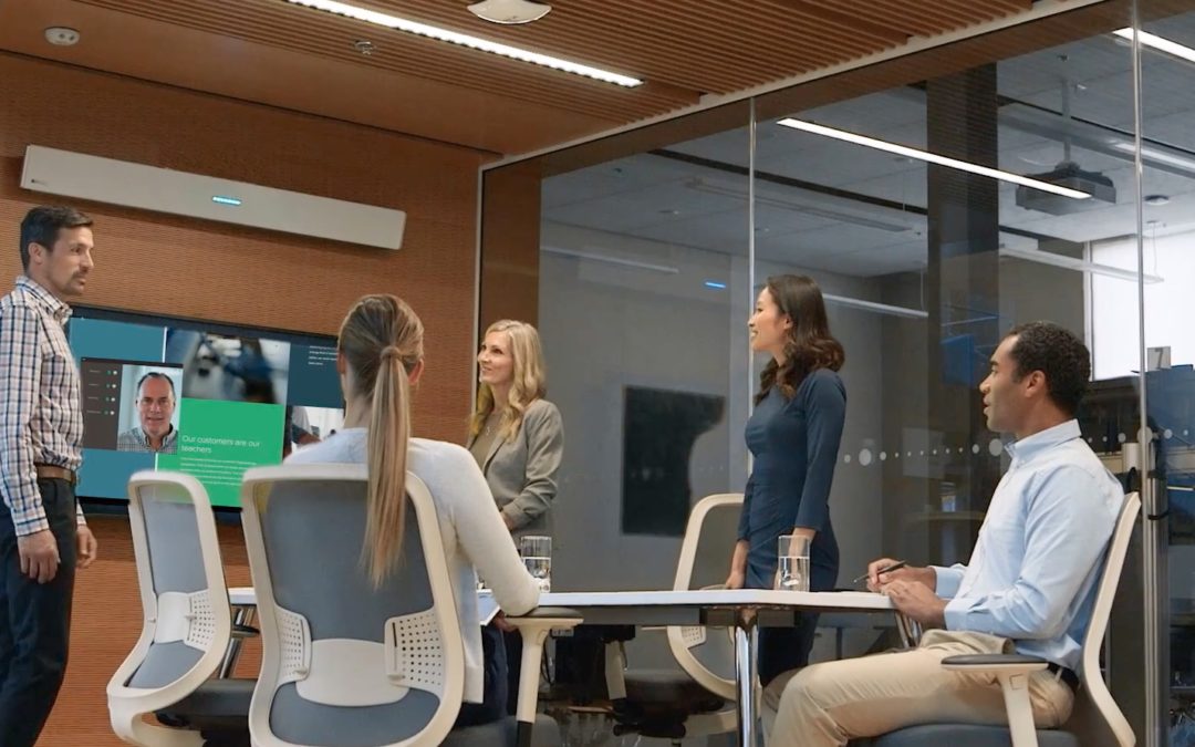 As large corporations turned to Skype for Business to replace the clunky Polycom and Cisco hardware of the past, new hardware players have come into the market with innovative solutions. Microphone technology for online meetings, however, hasn’t had the same revolution that webcams have. Nureva, have honed in on this gap in the market. The HDL300 is a revolutionary new microphone technology designed for medium to large meeting rooms. It uses 8192 virtual microphones and auto calibrates to the size of its meeting room. Gone are disruptions from drumming fingers on the desk, or the peaks in audio quality as individuals lean closer to the desk to speak. The technology knows where every person in the room is (even if they are facing away from the device), delivering a crystal clear experience. The HL300, accompanied by an F-series 84″ 4K captive touch screen from Avocor provides a compelling Skype for Business solution for any large meeting room or boardroom.